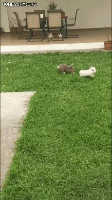 마당에서싸우는토끼들